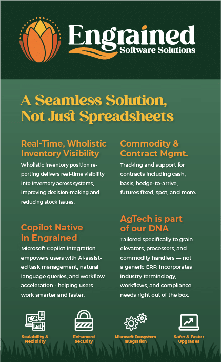 Engrained connects grain commodities to Microsoft Business Central – a modern, cloud-based platform built for flexibility and